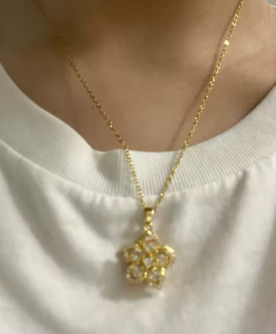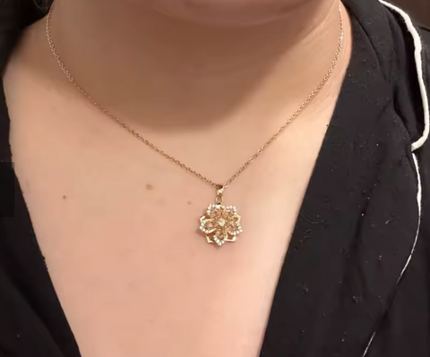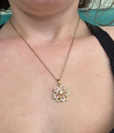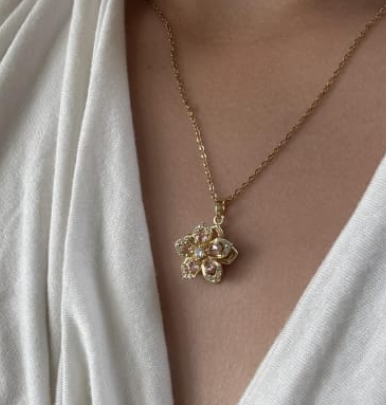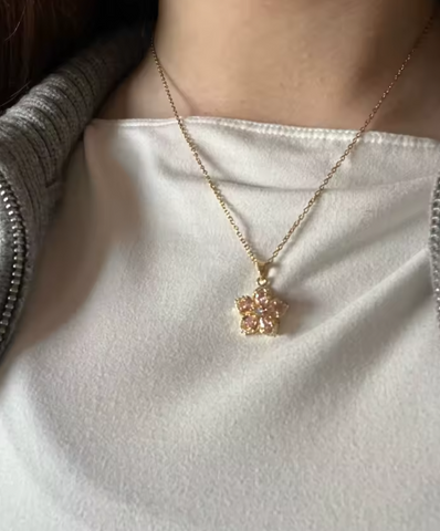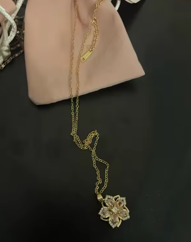 Me compré el rosa y, sinceramente, es el collar más bonito que tengo. Me preocupaba que la cadena fuera débil, pero se siente muy resistente, y la flor giratoria es súper satisfactoria. Mi hermana no deja de intentar robármelo jajaja.