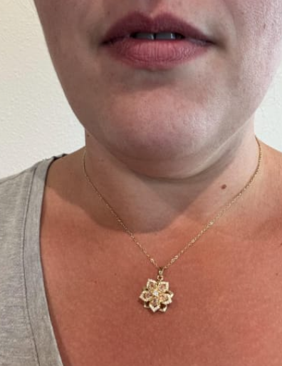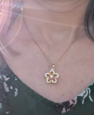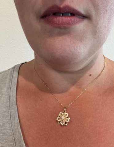 Pensé que sería más simple, pero la calidad me dejó encantada. La cadena es fuerte y la flor tiene un acabado muy fino. Lo he usado varios días seguidos y sigue perfecto.